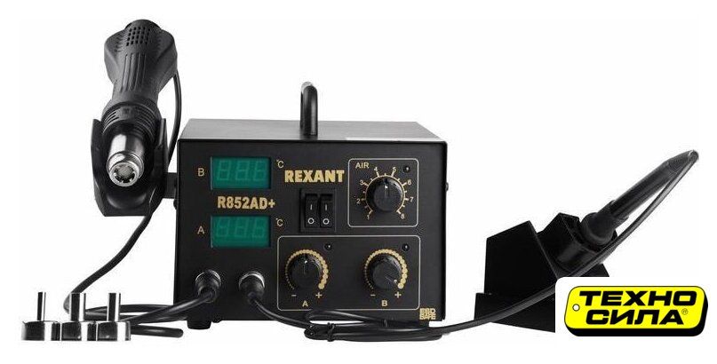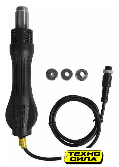 Комплектация | основной блок, термофен, паяльник, держатель паяльника, держатель термофена, губка для очистки жала паяльника (в ложементе), 3 насадки для термофена разного размера. |