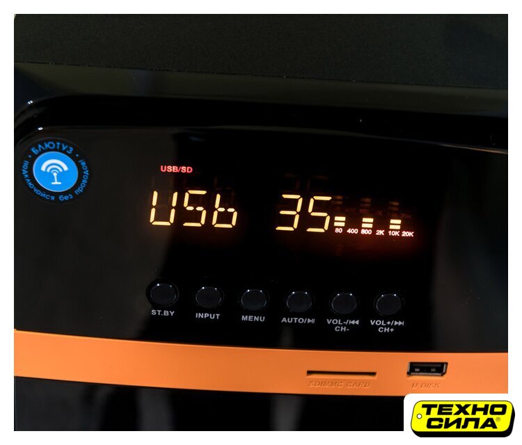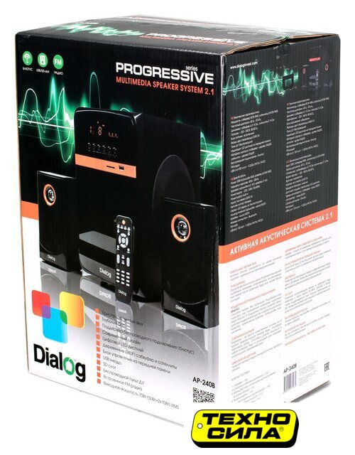 2.1, 40 Вт, подключение по USB, пульт, радио, BT, карты памяти