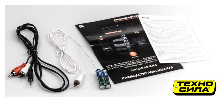 Комплект поставки | сабвуфер, два сателлита с кабелем для подключения, кабель для подключения к источнику сигнала 2RCA-M->3.5 мм "стерео джек", беспроводной пульт ДУ, батарейки ААА для пульта ДУ - 2 шт, антенный кабель, руководство пользователя, гарантийный тало |