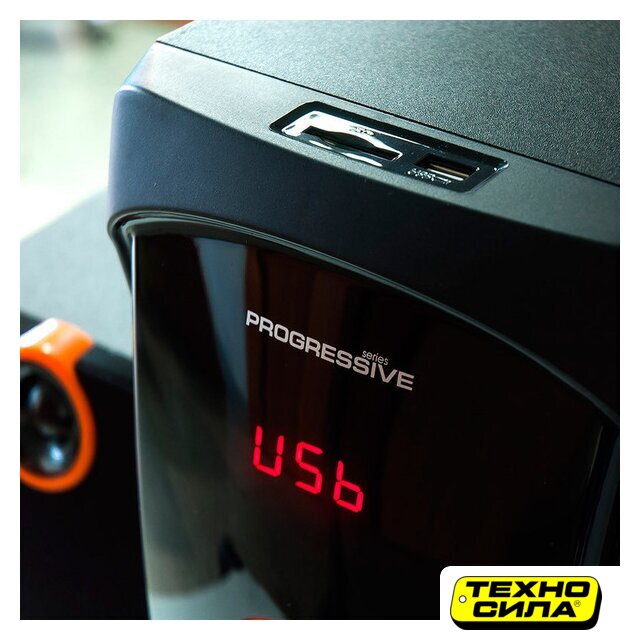 2.1, 40 Вт, подключение по USB, пульт, радио, BT, карты памяти