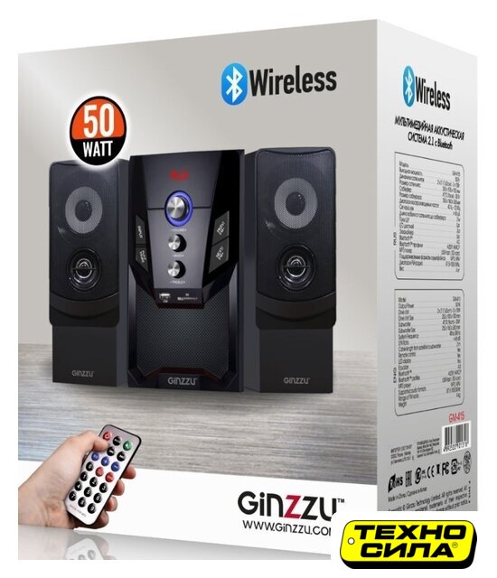 2.1, 50 Вт, пульт, радио, BT, карты памяти