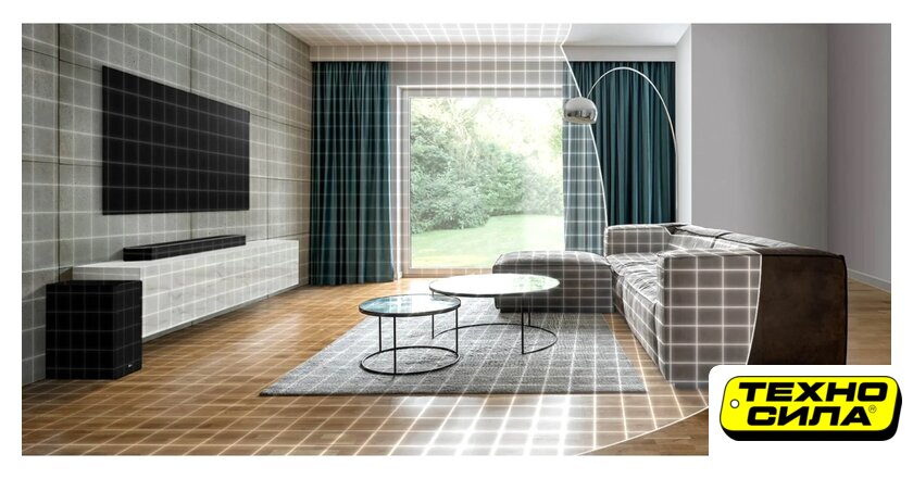 Состав аудиосистемы | звуковая панель, беспроводной сабвуфер |