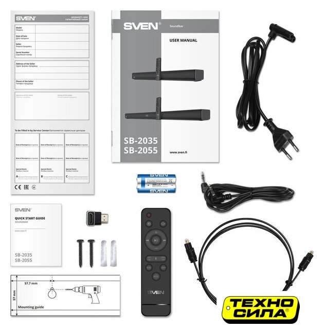 Комплект поставки | - пульт ДУ- батарейки для пульта ДУ (2xAAA)- оптический аудиокабель- аудиокабель 3.5 мм- адаптер HDMI угловой - адаптер питания- набор для настенного крепежа- документация |