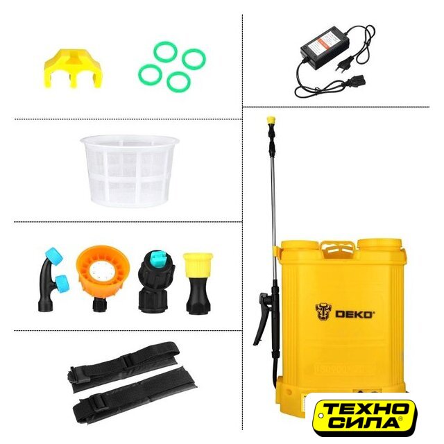 Комплектация | - опрыскиватель- уплотнительные кольца - 4 шт.- держатель для шланга - 1 шт.- сопло - 4 шт.- пластиковая решетка-фильтр - 1 шт.- лямки съемные - 2 шт.- зарядное устройство - 1 шт.- коробка |