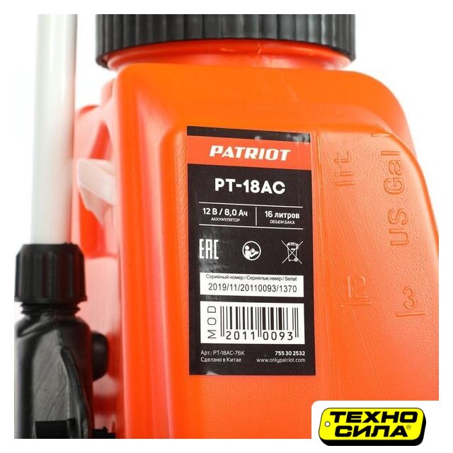аккумуляторный, 12 л, расход 3.1 л/мин, 5.5 бар, корпус: пластик, телескопическая штанга