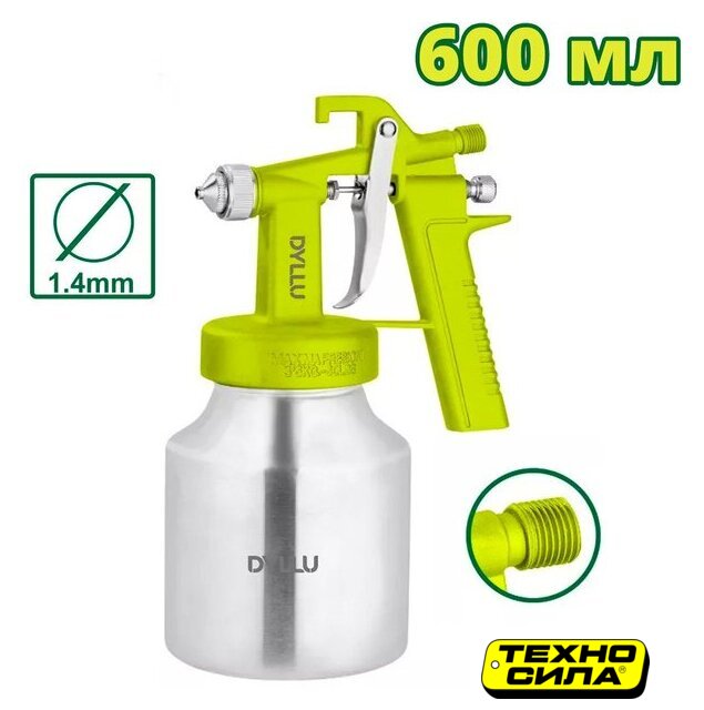 расход воздуха: 142 л/мин, 3.5 бар, сопло: 6.0 мм, бачок: 750 мл, 500 г