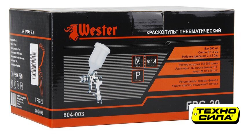 HVLP, расход воздуха: 198 л/мин, 3 бар, сопло: 1.4 мм, бачок: 600 мл, 1000 г