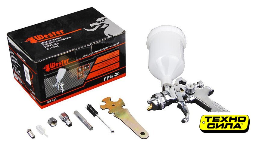 HVLP, расход воздуха: 250 л/мин, 2 бар, сопло: 1.4 мм/1.7 мм, бачок: 600 мл