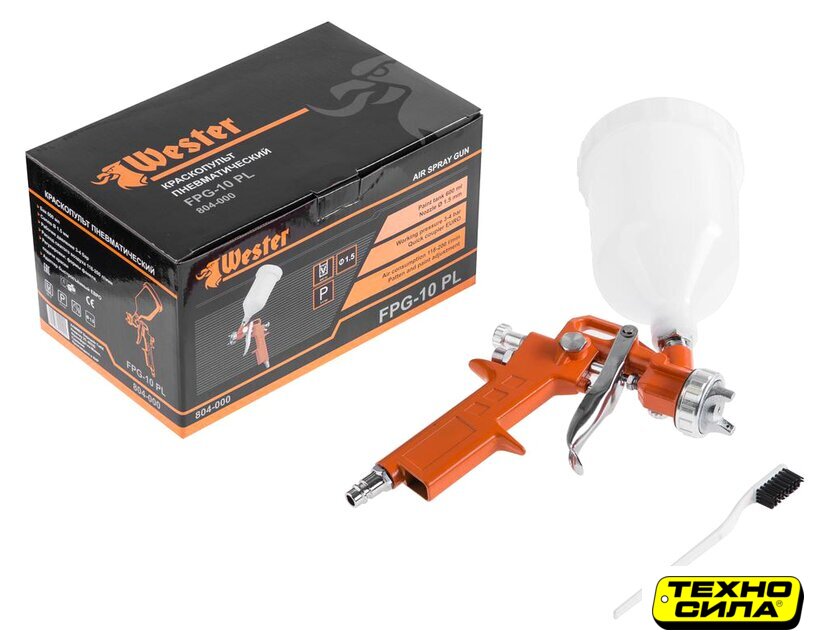 HP, расход воздуха: 200 л/мин, 3 бар, сопло: 1.5 мм, бачок: 1000 мл, 800 г