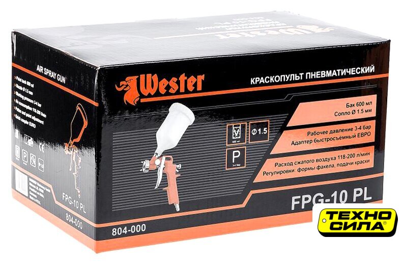 HP, расход воздуха: 175 л/мин, 3.5 бар, сопло: 1.5 мм, бачок: 600 мл, 1300 г