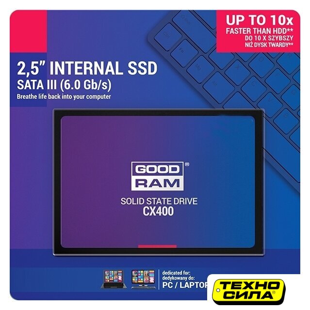 512 ГБ, 2.5", SATA 3.0, последовательный доступ: 550/500 МБайт/с, случайный доступ: 40000/50000 IOps