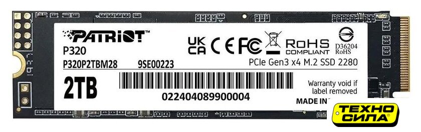 1 ТБ, M.2 2280, PCI Express 4.0 x4, последовательный доступ: 3600/3000 МБайт/с, случайный доступ: 500000/420000 IOps
