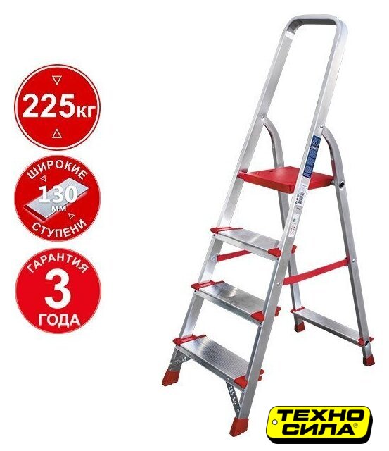 лестница-стремянка, 3 ступени, алюминий, верхняя площадка