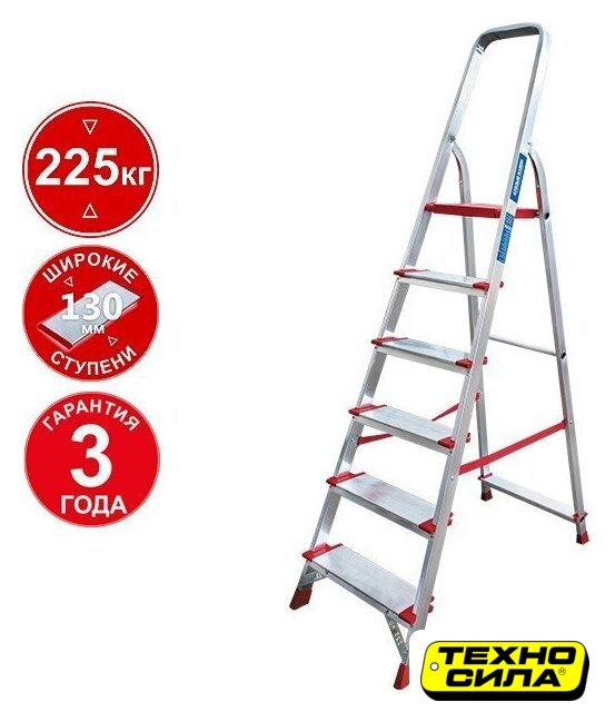 лестница-стремянка, 5 ступеней, алюминий, верхняя площадка