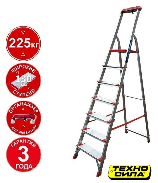 лестница-стремянка, 7 ступеней, алюминий, верхняя площадка