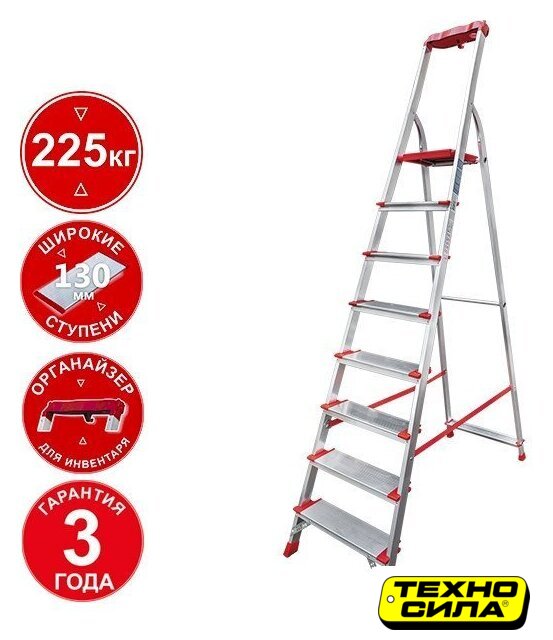 лестница-стремянка, 8 ступеней, алюминий, верхняя площадка