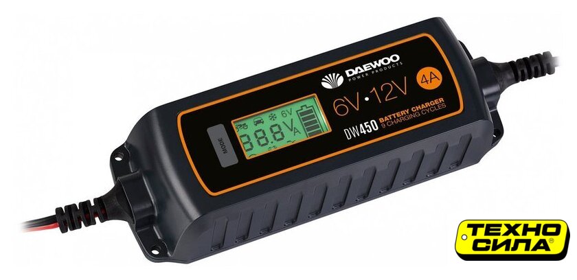 ёмкость заряжаемой батареи: 6–400 А·ч, ток зарядки: 18 А, масса: 1.2 кг