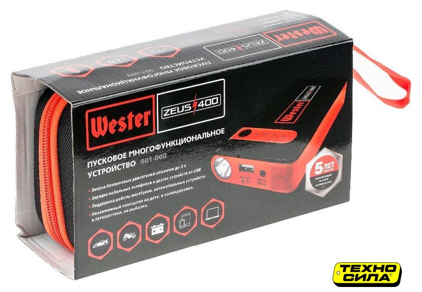 портативное пусковое устройство, ёмкость встроенного аккумулятора: 10000 мА·ч, максимальный пусковой ток: 500 А