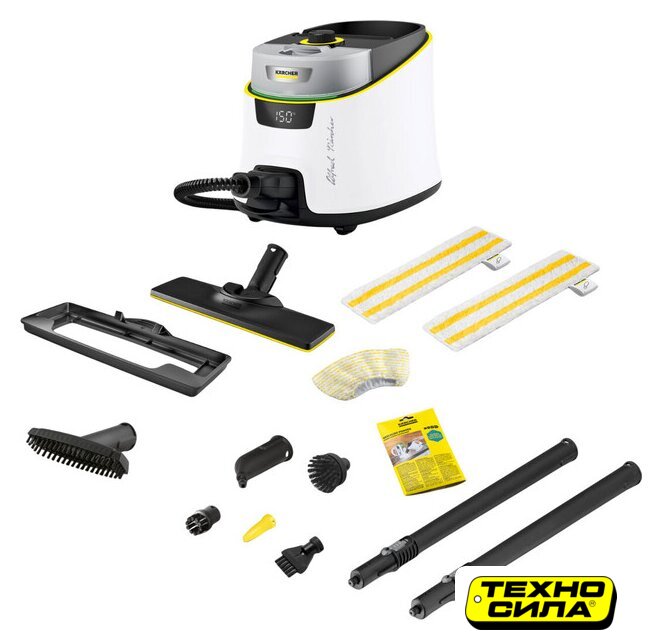 Дополнительные насадки и приспособления | - Универсальная салфетка для пола EasyFix: 2 шт.- Обтяжка из микроволокна для ручной насадки: 1 шт.- Порошок антинакипина: 3 шт.- Точечное сопло- Ручная насадка- Мощное сопло- Круглая щетка, черная: 1 шт.- Круглая щетка, большая- Щетка для очистки швов- Насадка для пола: EasyFix- Удлинительные трубки (2 х 0,5 м)- Насадка для очистки ковров |