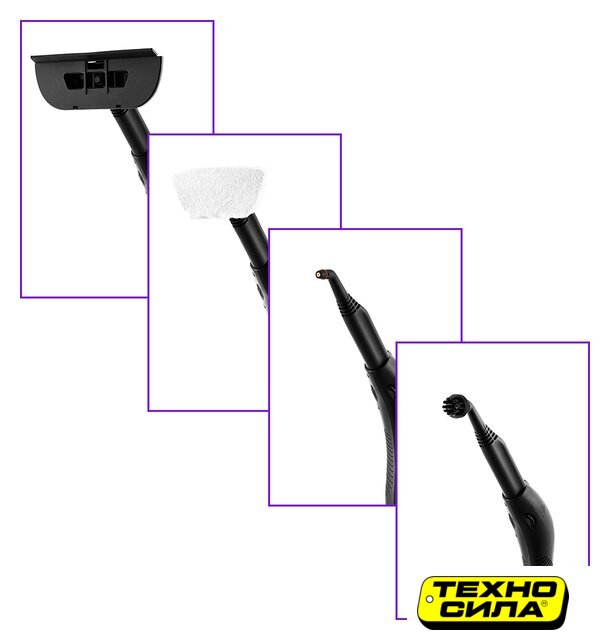 Дополнительные насадки и приспособления | - тряпка для отпаривания;- латунная щетка;- тряпка для пола;- насадка для отпаривания;- рамка для ковра;- мерный стакан;- круглая нейлоновая щетка;- ремень;- запасные уплотнительные кольца;- колпачок на паровое сопло. |