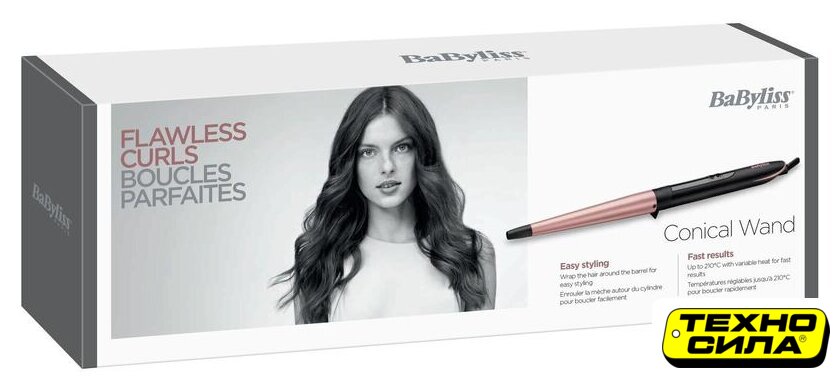 конусная плойка, керамика, регулировка температуры: 30 режимов, максимальная температура: 210 °С, нагрев 45 с