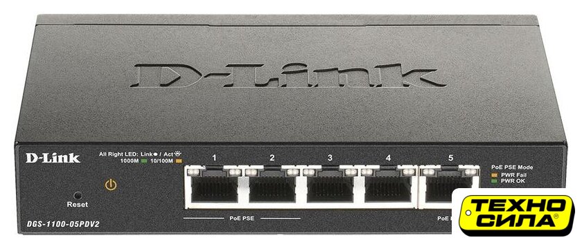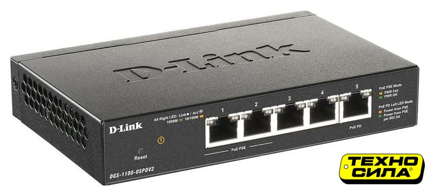 неуправляемый, настольный, 5xGbit, 1xSFP, PoE