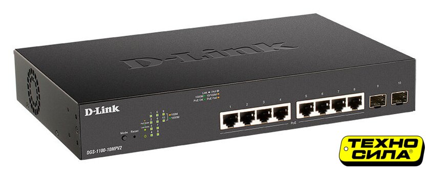 управляемый 2-го уровня, настольный/стоечный, матрица 20 Гбит/с, 14.88 Mpps, 8xGbit, 2xSFP, PoE, бюджет 130 Вт