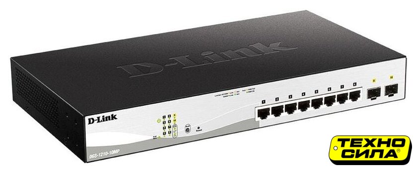управляемый 2-го уровня, настольный/стоечный, матрица 20 Гбит/с, 8xGbit, 2xSFP, PoE