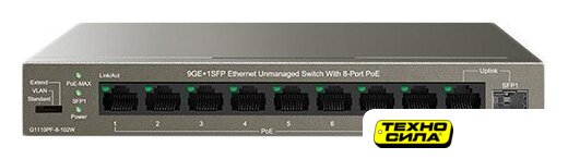 неуправляемый, настольный, матрица 3.6 Гбит/с, 2.67 Mpps, 8x100Mbit, 1xSFP, PoE, бюджет 80 Вт