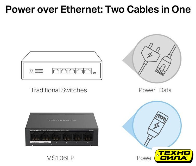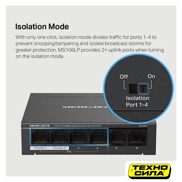 неуправляемый, настольный, матрица 1 Гбит/с, 5x100Mbit