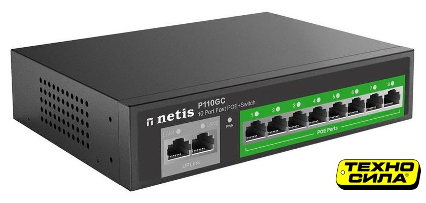 неуправляемый, настольный/стоечный, матрица 5.6 Гбит/с, 8x100Mbit, 2xGbit, PoE