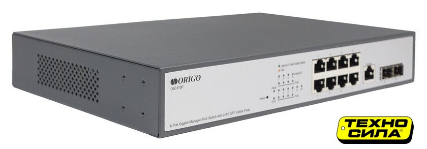 управляемый уровня 2+, стоечный, матрица 20 Гбит/с, 15 Mpps, 8xGbit, 2xSFP, PoE, бюджет 130 Вт