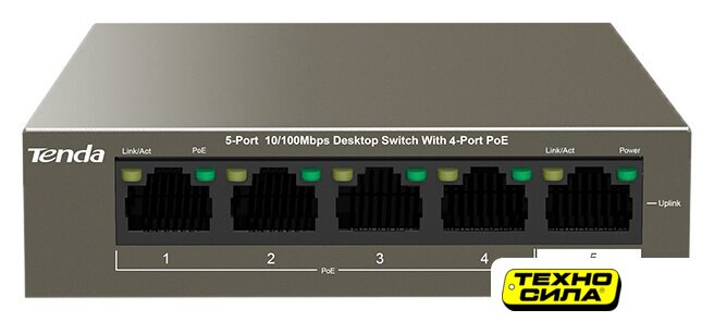 неуправляемый, настольный/настенный/стоечный, матрица 1.6 Гбит/с, 1.48 Mpps, 10x100Mbit, PoE, бюджет 58 Вт