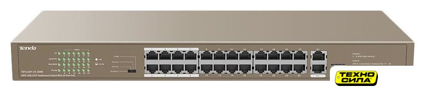 управляемый 2-го уровня, настольный/стоечный, матрица 52 Гбит/с, green, 24xGbit, 2xSFP