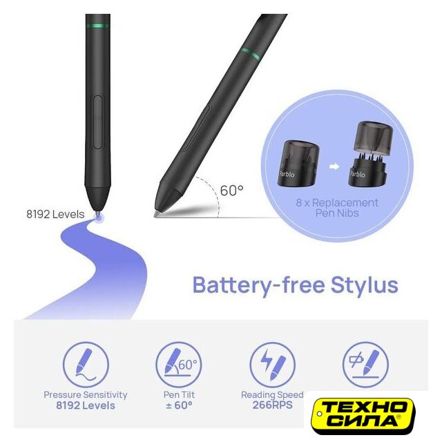 перо, 5080 lpi, 8192 уровней давления, интерфейс USB Type-A/USB Type-C/microUSB