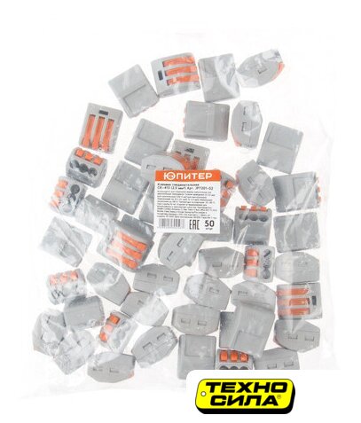 ном. напряжение 380 В, ном. ток 32 А, корпус: полиэтилен, соединение: пружинный зажим, 3 точки, сечение одножильных проводников 0.1-2.5 кв.мм, сечение многожильных проводников 0.08-4 кв.мм, 50 шт. в наборе, цвет: белый/оранжевый