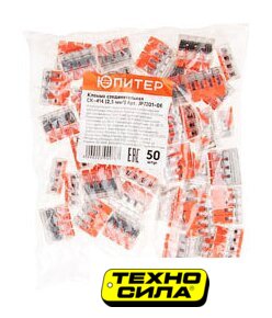 3 точки, сечение одножильных проводников 0.1-2.5 кв.мм, сечение многожильных проводников 0.08-4 кв.мм, 50 шт. в наборе, цвет: белый/оранжевый