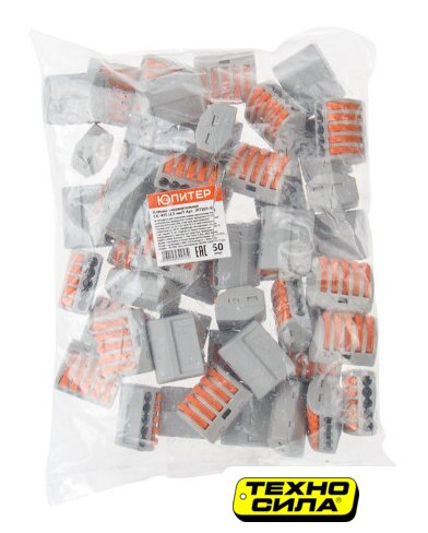ном. напряжение 380 В, ном. ток 32 А, корпус: полиэтилен, соединение: пружинный зажим, 5 точек, сечение одножильных проводников 0.1-2.5 кв.мм, сечение многожильных проводников 0.08-4 кв.мм, 50 шт. в наборе, цвет: белый/оранжевый