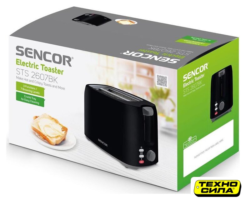 700 Вт, количество тостов: 2, корпус: пластик/металл, 7 степеней обжаривания, цвет черный