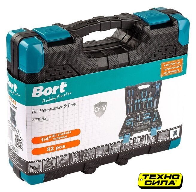 | Комплектация | Бита 25 мм 42шт (3, 4, 5, 5.5, 6, 7, AD, PH0, PH1, PH2, PH2, PH3, PZ0, PZ1, PZ2, PZ2, PZ3, S0, S1, S2, S3, T10, T15, T20, T25, T27, T30, T40, H2, H2.5, H3, H4, H5, H5.5, H6, SP4, SP6, C1, TW1, TW2, TW3, TW4)БокорезыГоловки 1/4" 9шт (5, 6, 7, 8, 9, 10, 11, 12, 13)ДлинногубцыКейс со сменными лезвиями 10штКлюч разводнойКлюч шестигранный 8шт (1,5; 2; 2,5; 3; 4; 5; 5,5; 6)НожОтвертка 100мм 2шт (PH2, SL6)Часовая отвертка 75 мм 4 шт (SL2, SL2.5, PH0, PH1)Отвертка-держатель для битПлоскогубцыРулетка 5м |