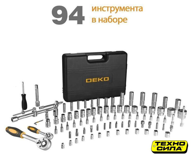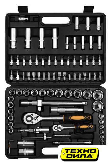 | Комплектация | - Головки 1/4": 4, 4.5, 5, 5.5, 6, 7, 8, 9, 10, 11, 12, 13, 14 мм.- Головки удлиненные 1/4": 6, 7, 8, 9, 10, 11, 12, 13 мм.- Удлинитель торцевых головок 1/4" х 2", 4".- Шарнир карданный 1/2", 1/4".- Держатель для бит 1/4".- Удлинитель гибкий 1/4" х 6".- Трещотка 1/2", 1/4".- Биты: SL4, 5.5, 7; PH1, 2; PZ1, 2; HEX3, 4, 5, 6; T8, 10, 15, 20, 25, 30.- Головка свечная 1/2": 16 мм, 21 мм.- Переходник для головок торцевых 1/2".- Головки 1/2": 10, 11, 12, 13, 14, 15, 16, 17, 18, 19, 20, 21, 22, 23, 24, 27, 30, 32 мм.- Головки удлиненные 1/2": 14, 15, 17, 19 мм.- Удлинитель торцевых головок 1/2": 5", 10".- Выдвижной Т-образный стержень 1/4".- Шестигранный ключ 1.5, 2, 2.5 мм.- Переходник для бит 1/2"Х8мм.- Биты: SL8, 10, 12; T40, 45, 50, 55; PH3, 4; PZ3, 4; HEX8, 10, 12, 14. |