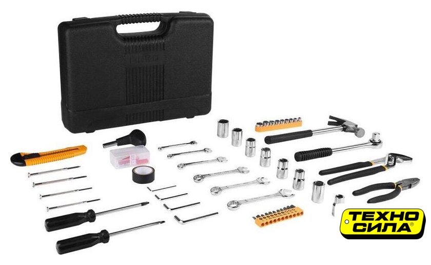 | Комплектация | - 4 шт шестигранные ключи 3,4,5,6мм;- 1 шт держатель для бит 6,35 мм;- 1 шт изолента 3м;- 6 шт комбинированные ключи 6,8,10, 12,13,14 мм;- 11 шт биты 25L;- 1 шт переставной ключ;- 2 шт отвертки PH2x100, SL6x100мм;- 9 шт 1/4 "головки 5,6,7,8,9,10,11,12,13 мм;- 8 шт 1/2 "головки 10,11, 12,13,14,15,17,19 мм;- 1 шт молоток;- 1 шт строительный нож 18 мм;- 1 шт ключ с трещоткой 1/2";- 4 шт прецизионные отвертки PH00,0, SL2.4,3.0;- 1 шт плоскогубцы 6";- Кейс. |