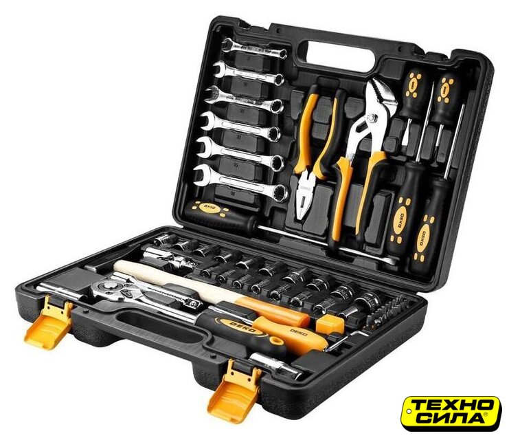 | Комплектация | - 6 шт. комбинированный ключ,- 1 шт. плоскогубцы,- 1 шт. переставной ключ,- 5 шт. отвертка,- 1 шт.1/4 "соединитель,- 7 шт. 1/4 " головка,- 10 шт. 1/2 " головка,1 шт. универсальный шарнир,- 1 шт. удлиннитель,- 2 шт. торцевая головка,- 3 шт. шестигранный ключ,- 1 шт. трещотка,- 1 шт. держатель головок,- 1 шт. молоток,- 1 шт. резиновая насадка на молото,- Кейс. |