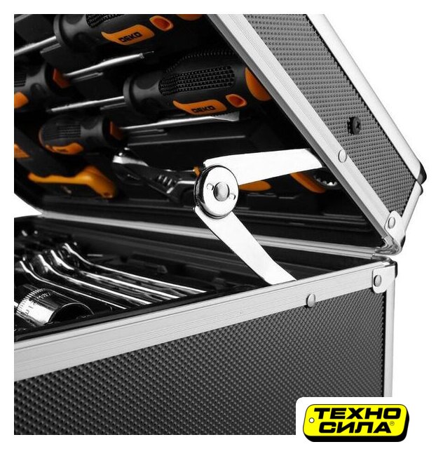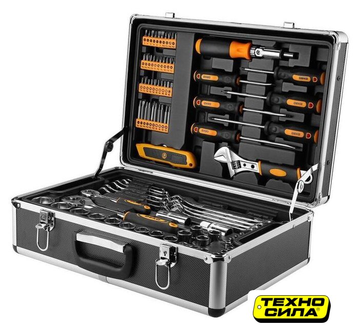 | Комплектация | - 30 шт. биты 25L;- 10 шт. биты 50L;- 1 шт. строительный нож 19мм;- 1 шт. держатель для бит 6.35мм;- 6 шт. отвертки PH1x75, 2x100, 2x125, SL 5x75, 6x100мм;- 1 шт. разводной ключ 8";- 2 шт. трещотки 1/4", 1/2";- 11 шт. 1/4" головки 4,5,5.5,6,7,8,9,10,11,12,13мм;- 13 шт. 1/2" головки 14,15, 16,17,18,19,20,21, 22,24,27,30,32мм;- 2 шт. свечи 1/2"x 16,21мм;- 11 шт. комбинированные ключи 6,8,10, 11,12,13,14,15, 17,19,21мм;- 1 шт. уровень 9";- 1 шт. бокорезы 6";- 1 шт. длинногубцы 6";- 1 шт. плоскогубцы 6";- 1 шт. клещи зажимные 7";- 1 шт. молоток с гвоздодером 226гр;- 1 шт. измерительная рулетка 3м. |