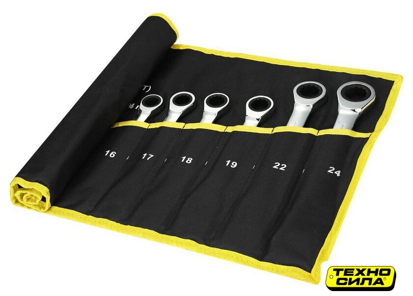 | Комплектация | Набор комбинированных трещоточных ключей: сумка; 7 мм; 8 мм; 10 мм; 11 мм; 12 мм; 13 мм; 14 мм; 15 мм; 16 мм; 17 мм; 18 мм; 19 мм; 22 мм; 24 мм |
