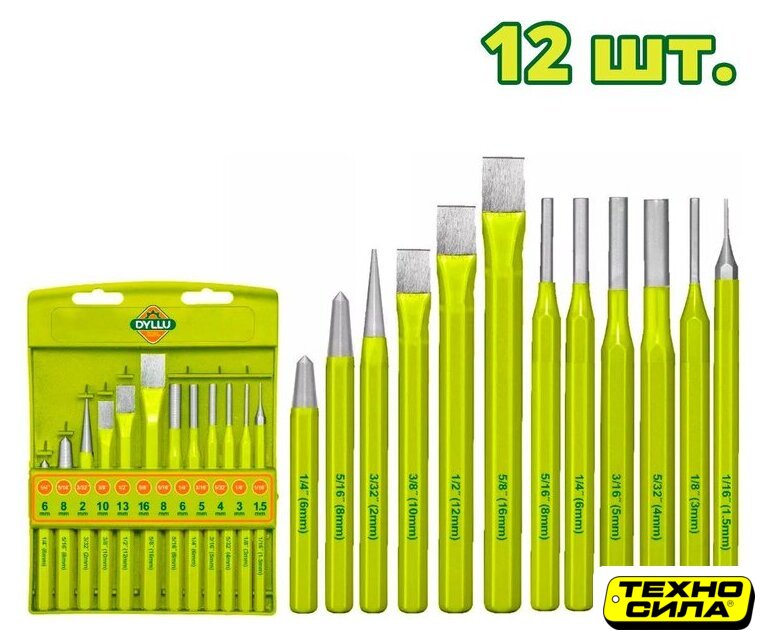 | Комплектация | Выколотки (1,5 мм, 3 мм, 4 мм, 5 мм, 6 мм, 8 мм) - 6 шт. Зубила (10 мм, 12 мм, 16 мм) - 3 шт. Бородок (2 мм) - 1 шт. Керны (6 мм, 8 мм) - 2 шт.Длина, мм 115-172 |