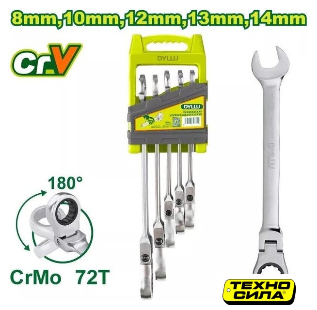 | Комплектация | набор гаечных ключей с трещоткой и шарниром 8-14мм - 5шт. (8мм, 10мм, 12мм, 13мм, 14мм); Пластиковый подвес для хранения - 1 шт. |