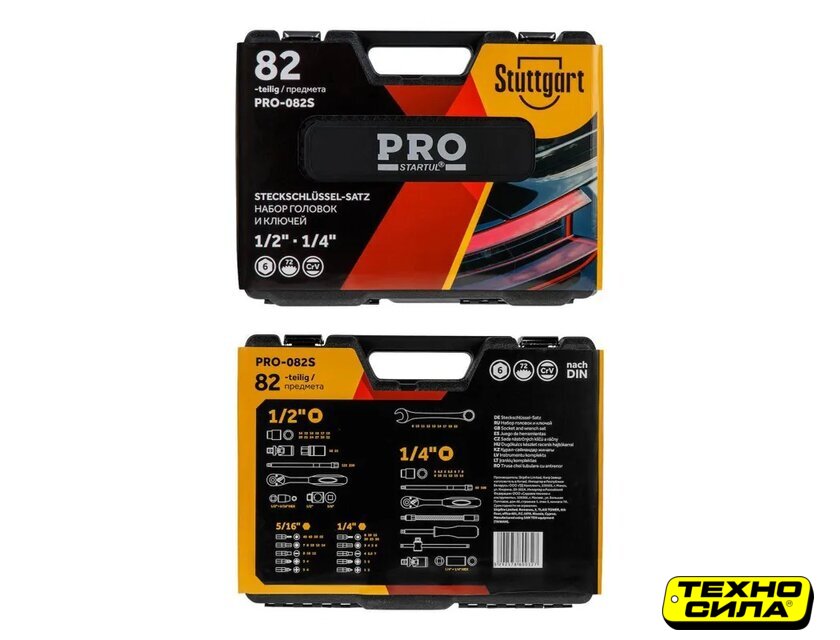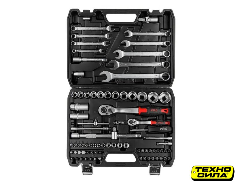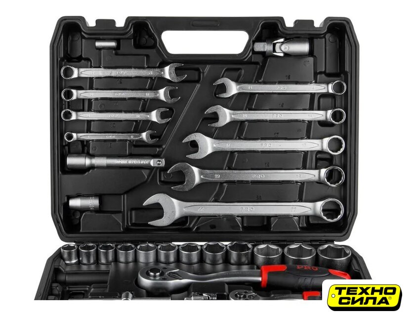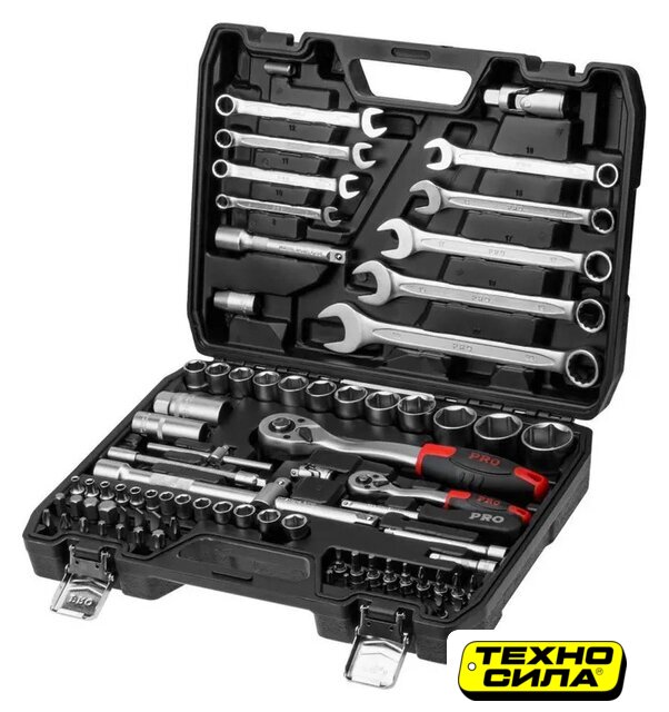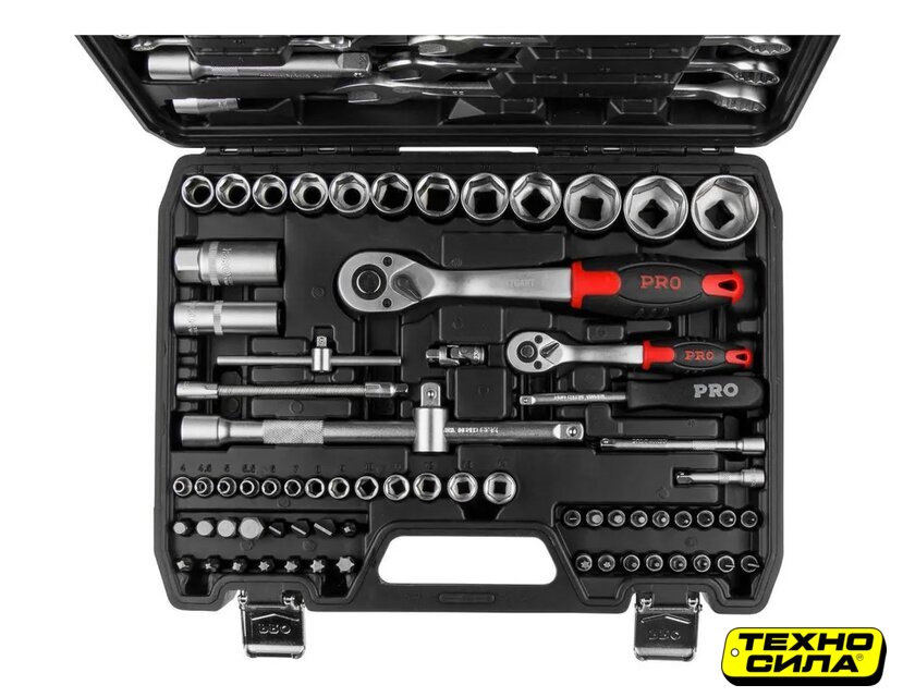 | Комплектация | Ключ комбинированный: 8, 10, 11, 12, 13, 14, 17, 19, 22 мм;Головка торцевая 1/4": 4, 4.5, 5, 5.5, 6, 7, 8, 9, 10, 11, 12, 13 мм;Головка с насадкой HEX 1/4": H3, H4, H5, H6;Головка с насадкой TORX 1/4": T8, T10, T15, T20, T25, T30;Головка с насадкой SL 1/4": SL4, SL5.5, SL7;Головка с насадкой PH 1/4": PH1, PH2;Головка с насадкой PZ 1/4": PZ1, PZ2;Головка торцевая 1/2": 14, 15, 16, 17, 18, 19, 20, 21, 22, 23, 24, 27, 30, 32 мм;Свечная головка 1/2": 16, 21 мм;Насадка 5/16" HEX: H7, H8, H10, H12, H14;Насадка 5/16" TORX: T40, T45, T50, T55;Насадка 5/16" SL: SL8, SL10, SL12;Насадка 5/16" PH: PH3, PH4;Насадка 5/16" PZ: PZ3, PZ4;Трещотка 1/4";Переходник (держатель для бит) 1/4"х1/4"(HEX);Удлинитель 1/4" 50 мм;Удлинитель 1/4" 100 мм;Гибкий удлинитель 1/4";Кардан 1/4";Вороток-отвертка 1/4" 150 мм;Вороток 1/4" с плавающей головкой 115 мм;Трещотка 1/2";Переходник (держатель для бит) 1/2"х5/16"(HEX);Удлинитель 1/2" 125 мм;Удлинитель 1/2"250 мм;Кардан 1/2";Переходник 3/8"(F)х1/2"(М) с отверстием;Кейс |
