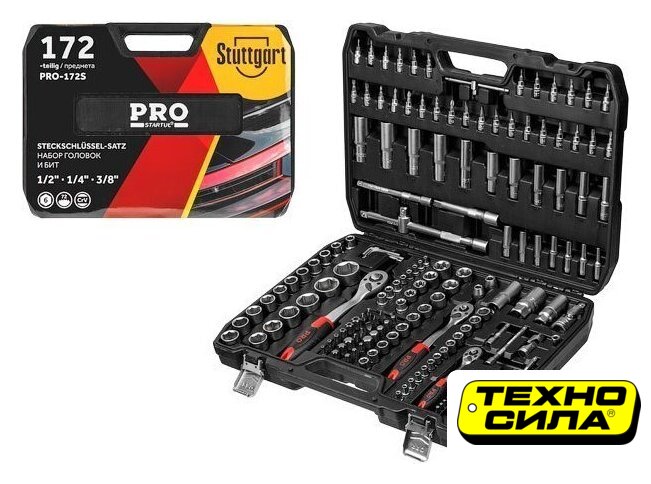 универсальный набор, 1/4", 3/8", 1/2", 172 предмета