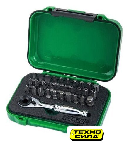 | Комплектация | - Плоские биты: 4, 5.5, 6.5 мм 1/4"- Биты Phillips: PH1, PH2, PH3 1/4"- Биты Pozidrive: PZ1, PZ2, PZ3 1/4"- Шестигранные биты: 3, 4, 5, 6 мм 1/4"- Биты TORX: T10, T15, T20, T25, T27, T30, T40 1/4"- Биты TORX с отв.: T10, T15, T20, T25, T27, T30, T40 1/4"- Квадратные биты: SQ1, SQ2- Переходник на квадрат 1/4"- 1/4" (H) 60 зубъев минитрещотка с флажковым переключателем |